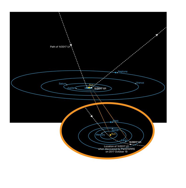 19. oktobra 2017 je teleskop Pan-STARRS 1 na Havajih zaznal šibko točko svetlobe, ki se je hitro premikala po nebu. Na prvi pogled se je neznani objekt zdel kot tipičen asteroid iz asteroidnega pasu. Z dodatnimi opazovanji v dneh po odkritju pa so lahko astronomi izračunali tirnico objekta in hitro ugotovili, da objekt zagotovo ne izvira iz Sončevega sistema, temveč je do nas prišel iz medzvezdnega prostora. Prav tako objekt pri potovanju skozi Soncu najbližjo točko septembra 2017 ni pokazal nobene aktivnosti, ki jo po navadi opazimo pri kometih. Nenavaden objekt so astronomi zato klasificirali kot asteroid iz medzvezdnega prostora in ga poimenovali 1I/2017 U1 ali `Oumuamua. Trenutno se nahaja nekaj več kot 400 milijonov kilometrov od Zemlje, ima magnitudo okoli 27 in se od nas oddaljuje s hitrostjo 5,5 milijonov kilometrov (15 razdalj med Zemljo in Luno) na dan.
