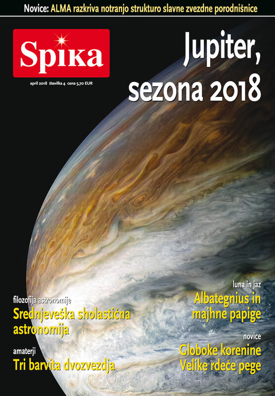 Novice: ALMA razkriva notranjo strukturo slavne zvezdne porodnišnice, S Hubblom opazili in raziskali najbolj oddaljeno zvezdo doslej, Sonda New Horizons podira rekord za rekordom, Globoke korenine Velike rdeče pege in pasov, idr.