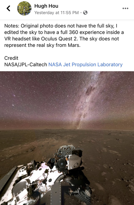 V dobi napačnih informacij moramo biti pri vsrkavanju novic in najrazličnejših vsebin previdni. Astronomija žal sledi zaskrbljujočim trendom. Na družabnih omrežjih se pojavljajo slike in videi, ki so vizualno zapeljivi in človeka ne pustijo ravnodušnega, a so v resnici plod človeške domišljije. Sami po sebi ti produkti niso sporni in večkrat gre zgolj za umetniške izdelke. A nekateri ljudje tak produkt zaradi lastnih ambicij in promocije širšemu ljudstvu predstavljajo kot pristen prikaz sveta. Nekritično sprejemanje informacij hitro vodi v masovno deljenje produkta. Poglejmo nekaj nedavnih primerov. Pričakovano je v zadnjih dneh najbolj priljubljen vir napačnih informacij Mars.