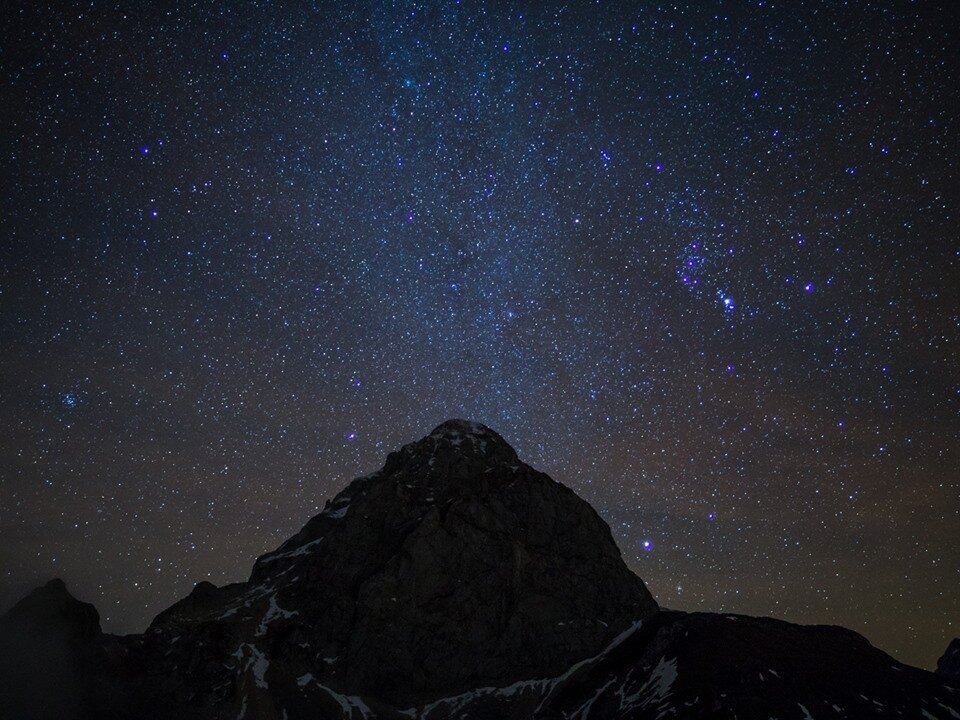 Ob 21:44 sem se s prostim očesom popasel po nebu in zanimivo: kljub Luni (bila je nizko) se je videla Rimska cesta in na severovzhodu (levo od mangartske gmote) je vzhajalo ozvezdje Andromede, v njem sem opazil svetel oblaček, galaksijo M 31. Tako, da sem transparenco ocenil na 5. [Mangartsko sedlo, 4./5. september 2019, 2072 m. n. m.]