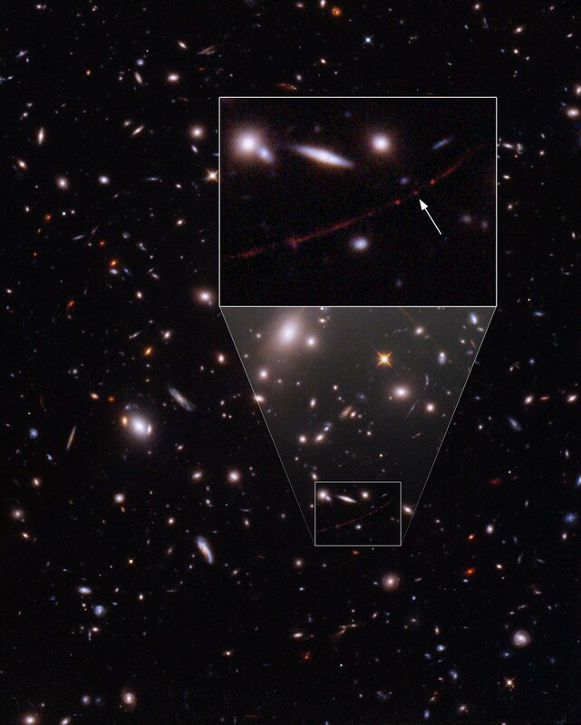 Jure JapeljAstronomi so odkrili izredno oddaljeno zvezdo, ki je svetlobo izsevala, ko je bilo vesolje staro okoli 900 milijonov let. Prejšnja zvezdna rekorderka je svetlobo izsevala v več kot štirikrat starejšem vesolju. Odkritje je omogočila masivna jata galaksij.