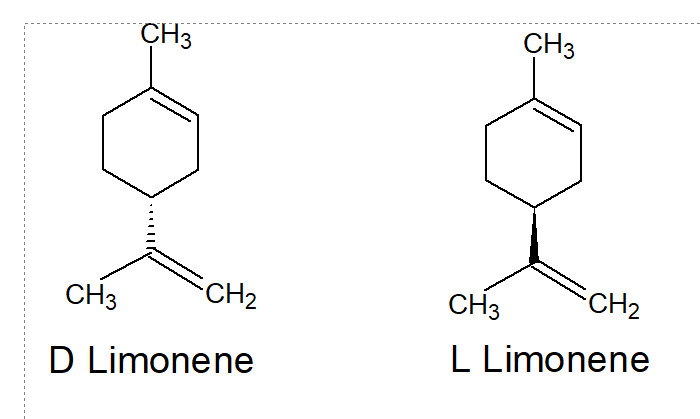 Limoni in pomaranči značilen vonj daje molekula limonen. Ena molekula, dva vonja—kako je to mogoče? Res gre za eno samo molekulo, narejeno iz istih atomov in istih vezi. A molekula limonena v pomaranči je zrcalna slika molekule limonena v limoni. To si lahko predstavljate s pomočjo svojih rok. Imamo dve roki, ki sta praktično enaki, le da je ena zrcalna slika druge. Ko limonen pride v stik z receptorji v našem nosu, registriramo različen vonj za različno molekulo.